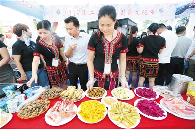 9月28日上午,一场雨不期而至,但是海口名门广场依然热闹非凡,200多种海南各地美食汇聚于此。上午10点半,为期3天的2017第二届海南美食文化节在海口名门广场开幕,海口、儋州、万宁、文昌、五指山、定安、临高、昌江、保亭、琼中共10个市县及200多家美食企业汇聚,市民游客到此便能领略海南饮食文化之美。