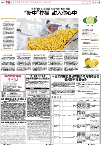 海南日报 专题关注海南农垦品牌产品系列之四·新中柠檬 008 2017-09-291 2017年09月29日 星期五