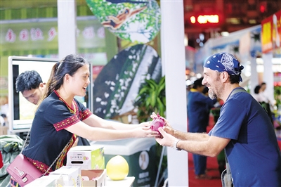 本报海口9月29日讯 (实习生郑景莹 见习记者唐咪咪)五指山展馆内热闹非凡,馆内陈列有五指山红茶、山兰糯米酒、铁皮石斛、忧遁草等各类健康食品,并在醒目位置设展台摆放黎锦,吸引了不少市民的视线。