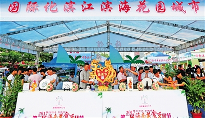 9月29日海口的天气是雷阵雨转多云,但当记者来到海口名门广场的2017第二届海南美食文化节现场,走进海口展馆,感受到的是一片碧海蓝天的夏日风情。