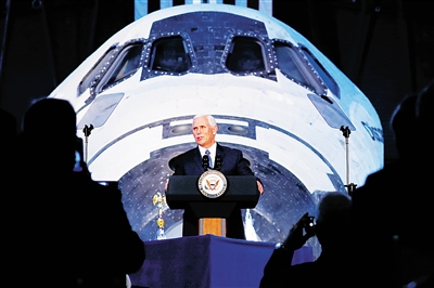 10月5日,美国副总统彭斯在弗吉尼亚州尚蒂利出席美国国家太空委员会首次会议前发表讲话。彭斯说,美国宇航员将重返月球,为人类将来前往火星乃至更远的地方打下基础。新华社发