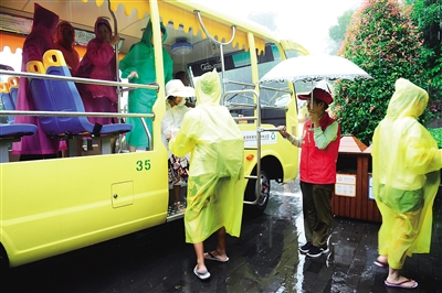 10月7日,三亚亚龙湾热带天堂森林旅游区,不少游客冒雨来到景区,游兴丝毫不减。