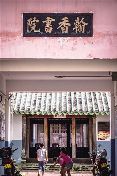 自海口府城出发,取道东线高速向南15公里,从龙泉出口路向西约2公里,便来到翰香小学,校园内有“翰香书院”旧址,玄武岩材质的匾额被镶嵌在新建教学楼的过道正上方,4个楷体大字笔力遒劲,庄重大方。教学楼后方是两进瓦房,分别作为学校的会议室和体育器材室,尽管房屋的顶部和外墙已经被翻新得很像庙宇,但内部和檐下的石础、梁柱、架构,以及窗户隔断和雕花等构件,做工精细,依然保护完好。