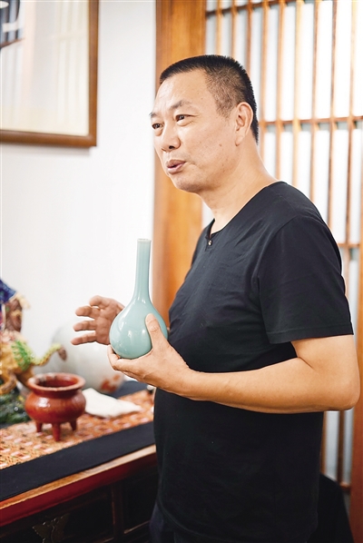 据蔡剑青介绍,龙泉青瓷没有浮华与雕琢感,在造型上找不出复杂的设计,往往一气呵成,轮廓线条至简至洁;色彩上,浑身澄净如玉,偶有刻花通常也是疏朗写意的几笔或简单的弦纹、莲瓣。“正是这种至简至雅、含蓄内敛之美最为动人。”他说。