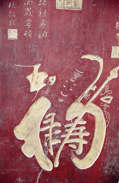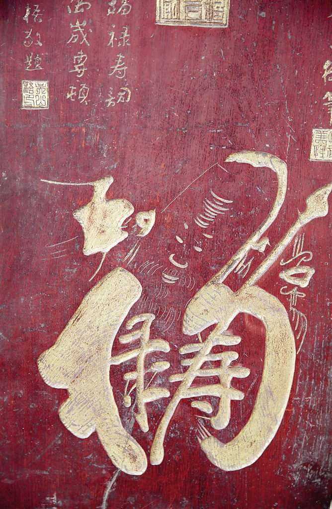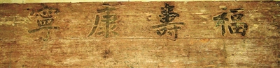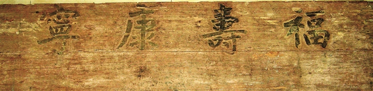苍劲有力的书法饱含书写者的美好祝愿与寄语,任凭岁月已将木料四周侵蚀,将漆色淡去。