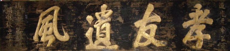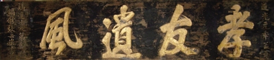从书法上看,“孝友遗风”为行楷,落款是楷书。上款题年款“道光元年孟夏”,下款“赐进士及第翰林院编修张岳崧书以及钤印”,由此断定此匾为张岳崧考上探花后为自家祠堂所题。