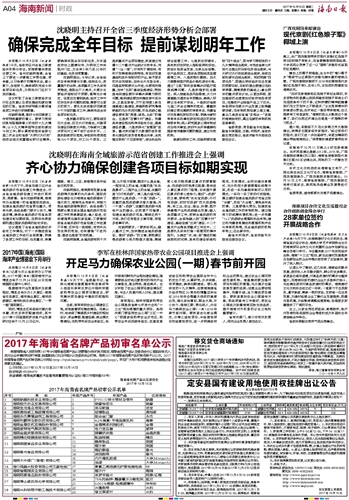 海南日报 海南新闻时政 004 2017-10-101 2017年10月10日 星期二