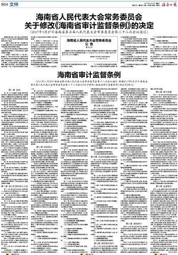 海南省人民代表大会常务委员会 关于修改《海南省审计监督条例》的决定