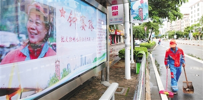 10月11日,“海口环卫之星”相片和简介亮相海口市高登东街一公交站台。据了解,在加快推进城市“净化”工作,提升城市品位和价值工作中,海口涌现出许多让人感动的环卫人和事。为了增加环卫工人的自豪感、荣誉感、责任感、使命感,海口市环卫局计划在城区50个公交站台设置展现环卫工人风采的宣传橱窗。目前,海口城区部分公交站台已设置16个“海口环卫之星”宣传橱窗。