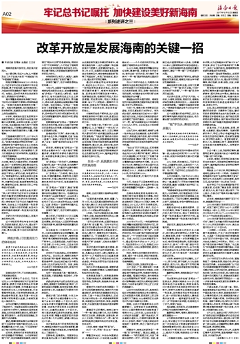 第002版:牢记总书记嘱托 加快建设美好新海南系列述评之三