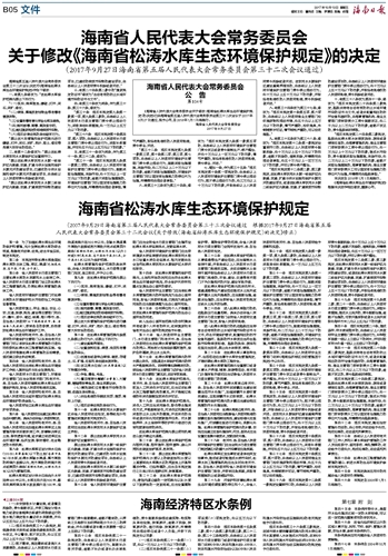 海南省人民代表大会常务委员会关于修改《海南省松涛水库生态环境保护规定》的决定