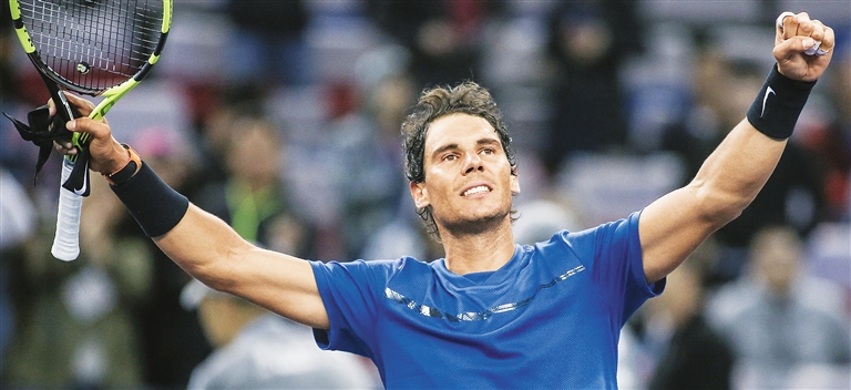 10月13日,在2017年ATP上海大师赛单打四分之一决赛中,西班牙选手纳达尔以2:1战胜保加利亚选手迪米特洛夫,晋级四强。
