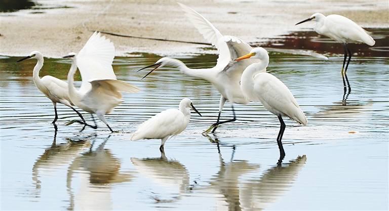 今年1月,在海南省野生动植物保护管理局组织的海南越冬水鸟调查中,就发现了另外一种世界级的濒危鸟类黑脸琵鹭,这说明该片湿地是整个东亚—澳大利亚的候鸟迁飞线路上的重要节点之一。