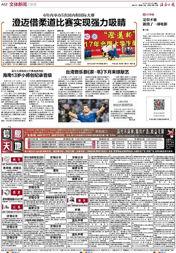 海南日报 文体新闻综合 012 2017-10-141 2017年10月14日 星期六