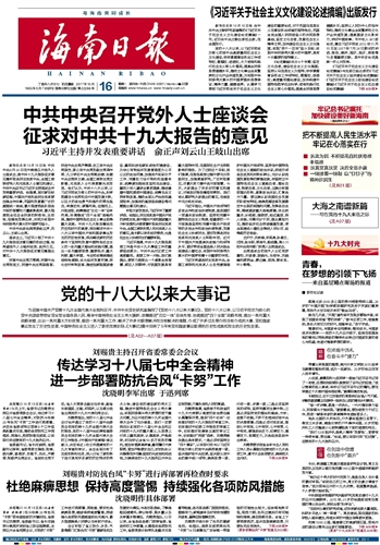 | 海南日报 头版 001 2017-10-161 2017年10月16日 星期一 |