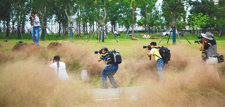 10月14日,在海口市凤翔湿地公园,众多摄影师进行取景拍摄。据了解,为展示海口美舍河治理改造、凤翔湿地公园建设后的成果,展示美舍河“水清、岸绿、景美、民乐”的景象,海口市文体局主办,南海网承办了“江海之滨 生态海口”海口美舍河生态摄影大赛。14日,吸引50余名摄影师前往拍摄。据了解,摄影作品征集时间截至10月30日,欢迎摄影大咖、航拍爱好者积极投稿,稿件发送至邮箱:19299225@qq.com,或关注南海网公众微信号投稿。本报记者 张茂 摄