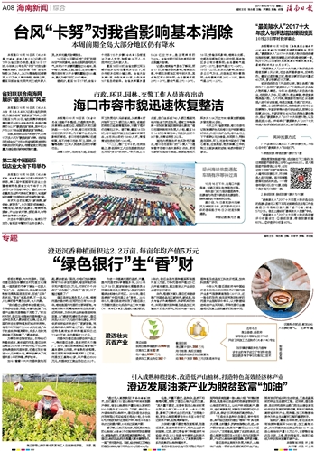 澄迈县林业局负责人介绍,海南沉香亦香亦药,应用历史已有1000多年,海南是国产沉香的主要来源地,与海南花梨木同属海南稀有自然资源。近两年来,为深化林业供给侧结构性改革,让“增绿”和增收同步进行,澄迈共投入6307万元进行绿化建设,并对低质低效经济林进行了更新改造,完成造林绿化面积逾2万亩。目前,澄迈特色高效经济林种植面积已达7.1961万亩,年产值超过11亿元。
