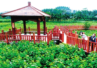 处在万泉河河头的堑对村,每到秋冬季节,南队、北队村小组一排排村舍前的绿地就会变成一条蜿蜒流淌的河流。这一涨一泄的河水,也成了当地打造乡村旅游的一大特色。
