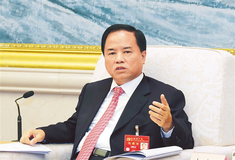刘赐贵表示,习近平总书记向大会所作的报告,主题鲜明、内涵丰富、高瞻远瞩、思想深邃,与时俱进地提出了一系列新的重要思想、重要观点、重大判断、重大举措,具有极强的战略性、指导性和实践性,是我们党在新时代新的历史起点上不忘初心、牢记使命的行动纲领,是马克思主义理论体系的又一次升华,充分体现了以习近平同志为核心的党中央准确把握时代大势、持续领导全党全军全国各族人民夺取中国特色社会主义事业伟大胜利的坚定信念和强大定力。