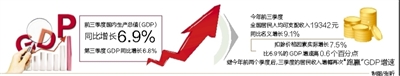 据新华社北京10月19日电(陈炜伟、杨学嘉)国家统计局19日发布数据,初步核算,今年前三季度国内生产总值(GDP)同比增长6.9%,其中,第三季度GDP同比增长6.8%,经济连续9个季度运行在6.7%至6.9%的区间,保持中高速增长。
