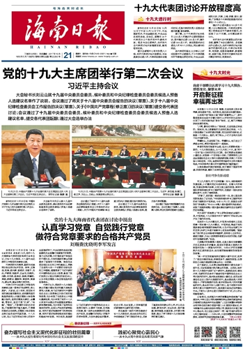 海南日报 头版 001 2017-10-211 2017年10月21日 星期六