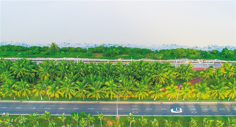 10月20日,以“生态修复”打造的海口市滨江西带状公园景观提升工程已基本完工。滨江西带状公园全长12.57公里,绿化部分以椰子树为主基调,同时为了丰富绿化景观层次,公园还搭配种植可以开花的树种、灌木等植物品种。本报记者 张茂 摄