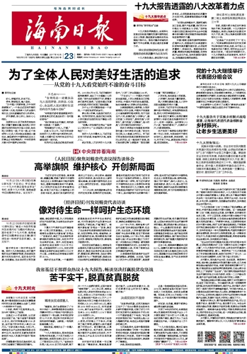 海南日报 头版 001 2017-10-231 2017年10月23日 星期一