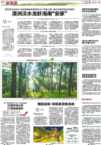 “好多公司追着我要龙虾苗,我劝他们不要着急先等等,马上就会有新的一批苗!”10月22日,在海垦荣光农场公司(以下简称荣光公司)旗下企业海垦浩海渔业投资有限公司的澳洲淡水龙虾养殖基地里,该公司总经理蔡辉高兴地告诉记者,虾苗最近供不应求,目前已经有100多万尾的订单。