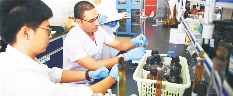 来自埃及的Ahmed目前正在海南大学进修环境科学专业的博士学位,记者见到他时,他正在进行污水处理实验,以通过判断水体污染程度找到相对应的解决办法。