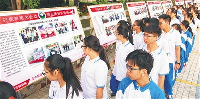 图为学生参观禁毒宣传图片展。