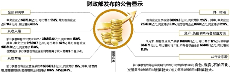 新华社北京10月23日电(记者刘红霞)记者23日从财政部获悉,今年前3季度,全国国有及国有控股企业实现利润总额达21788.5亿元,同比增长24.9%,实现收入和利润持续较快增长。