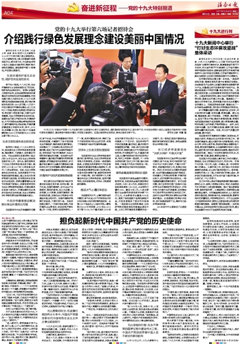 十九大新闻中心举行“打好生态环保攻坚战”集体采访