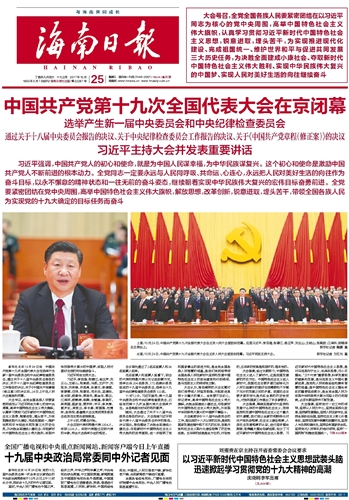 大会号召,全党全国各族人民要紧密团结在以习近平同志为核心的党中央周围,高举中国特色社会主义伟大旗帜,认真学习贯彻习近平新时代中国特色社会主义思想,锐意进取,埋头苦干,为实现推进现代化建设、完成祖国统一、维护世界和平与促进共同发展三大历史任务,为决胜全面建成小康社会、夺取新时代中国特色社会主义伟大胜利、实现中华民族伟大复兴的中国梦、实现人民对美好生活的向往继续奋斗