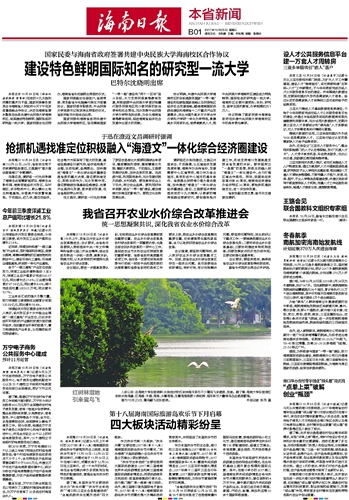 海南日报报业集团旗下媒体: 海南日报 |南国都市报 |南海网 |南岛晚报 |证券导报 |法制时报 |海南农垦报 设为首页