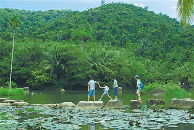 除了继续擦亮这两大景区品牌,保亭还继续精心建设七仙岭温泉国家森林公园4A级景区,以及缘真神玉文化园、茶溪谷文化旅游区、仙安石林地质公园等一批精品旅游景区,以优质资源和高品质的开发打造保亭全域旅游发展品牌。实施全域化乡村旅游,按照“一村一景、一村一品、一村一韵、一村一特色”的思路,依托黎苗风情、田园风光、热带瓜果等资源,将景区、酒店植入农村,创建开放式无门票美丽乡村、休闲乡村。