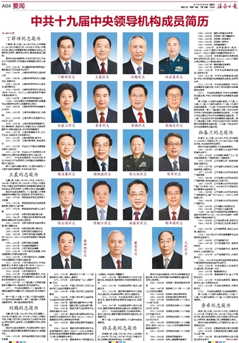 中共十九届中央领导机构成员简历