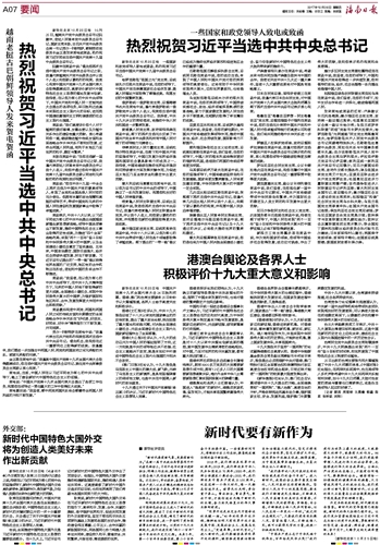 港澳台舆论及各界人士 积极评价十九大重大意义和影响