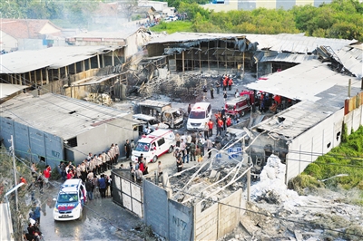 这是10月26日在印度尼西亚唐格朗市拍摄的发生爆炸的烟花厂。 据印度尼西亚媒体26日报道,印尼首都雅加达西郊唐格朗市一座烟花厂当天发生爆炸,造成至少47人死亡、46人受伤。 新华社发