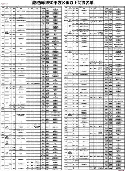 流域面积50平方公里以上河流名单