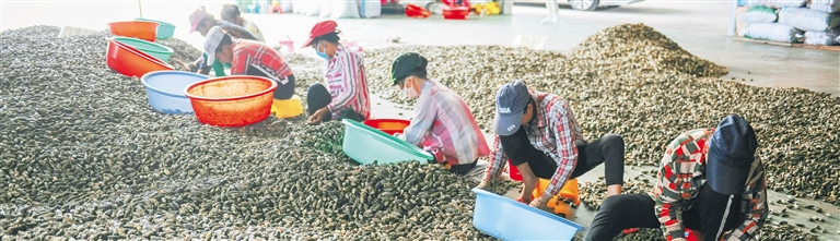 10月26日,万宁龙滚镇一槟榔加工厂,农户正在整理刚收购的槟榔。