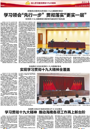 学习贯彻十九大精神 推动海南各项工作再上新台阶