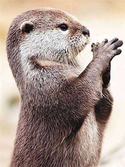 据英国《每日邮报》2016年10月8日报道,在荷兰塔曼市的野外探险公园内,有一只4岁的亚洲小爪水獭做祈祷状时被游客拍下,模样呆萌可爱。打开网络,网上经常流传一些水獭进食前“祈祷”的图片,这说明一些水獭有进食前“祈祷”的习性。