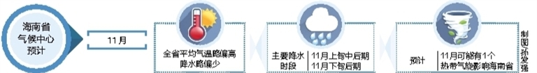 另外,预计11月2日,南海南部海域可能有热带气旋生成,之后将向偏西方向移动,对海南省陆地和近海无直接影响。