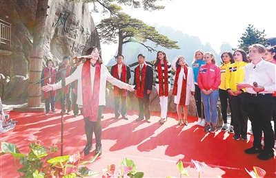 10月29日,第67届世界小姐全球总决赛启幕仪式在安徽黄山举行,来自全球126个国家和地区的选手,在以“皖美世界——世姐看黄山·世界看中国”为主题的5天巡游活动中,充分感受中国山水之美及传统文化之美。11月6日,126位参赛佳丽将前往我省三亚市,开始为期两周的“海丝盛典2017三亚时尚周”之行,并于11月18日参加本届世界小姐全球总决赛,角逐第67届世界小姐全球总冠军。图为第67届世界小姐全球总决赛启幕仪式上,世界小姐组织机构主席莫莉夫人在致辞。 本报记者 张杰 摄