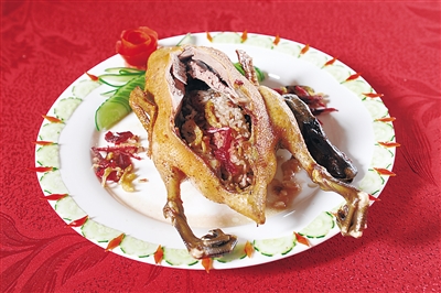 海尾野外放养的小种鸭,处理干净放入糯米和其它喜爱的食材,烤制时鸭汁渗入糯米,外脆里嫩,不失水分,米饭喷香,鸭肉金黄,让人垂涎不已。