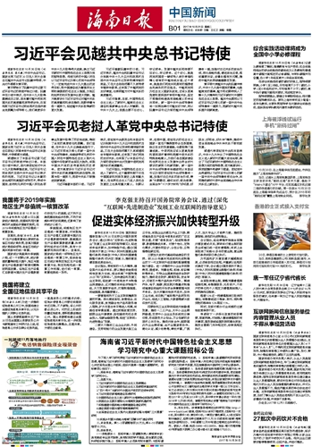 海南日报 中国新闻 013 2017-10-311 2017年10月31日 星期二