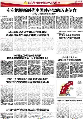 海南日报 深入学习宣传贯彻十九大精神 003 2017-10-311 2017年10月31日 星期二