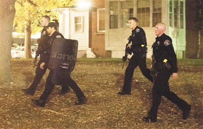 10月30日,在美国犹他州首府盐湖城,警察在犹他州大学附近搜寻枪击案嫌疑人。 美国犹他州大学校园附近30日发生枪击案,导致至少1人死亡。 新华社/美联