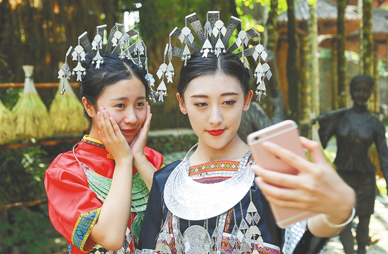 东方白查村同样是一个以少数民族元素构成的地方,村里的茅草房犹如一艘艘倒扣的船,被称之为“船型屋”。村民们则穿着黎族传统服饰,结伴在树荫下扎染织锦、编织竹席、制作器皿等。