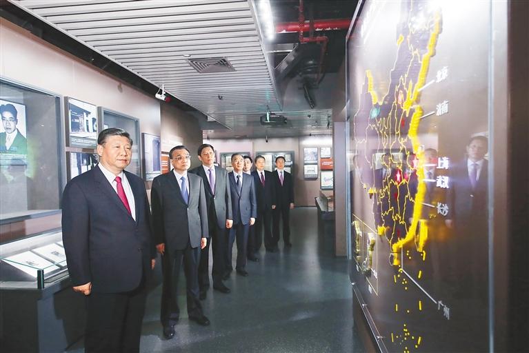 题为《追梦》的视频短片,浓缩了我们党波澜壮阔的奋斗历程,习近平等驻足观看。习近平表示,我们党的全部历史都是从中共一大开启的,我们走得再远都不能忘记来时的路。